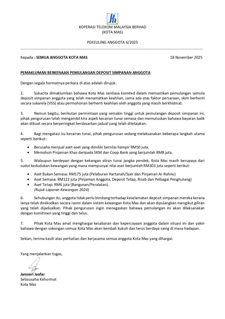 PEKELILING ANGGOTA 6/2025 PEMAKLUMAN BERKENAAN PEMULANGAN DEPOSIT SIMPANAN ANGGOTA